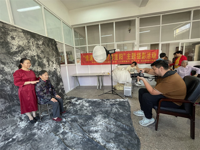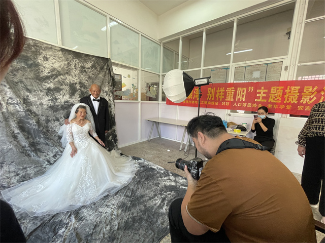 10月18日,在銀灣村活動現(xiàn)場,邀請了安吉新新托養(yǎng)所為老人們化妝,拍攝婚紗照和藝術(shù)照。安吉縣人民醫(yī)院的院長戴美琴對老年人進行了慰問。一位老人感慨道:“年輕的時候,日子過得艱苦,上有老,下有小,也不曾拍藝術(shù)照和婚紗照。沒想到,老了還有機會洋氣一回。”