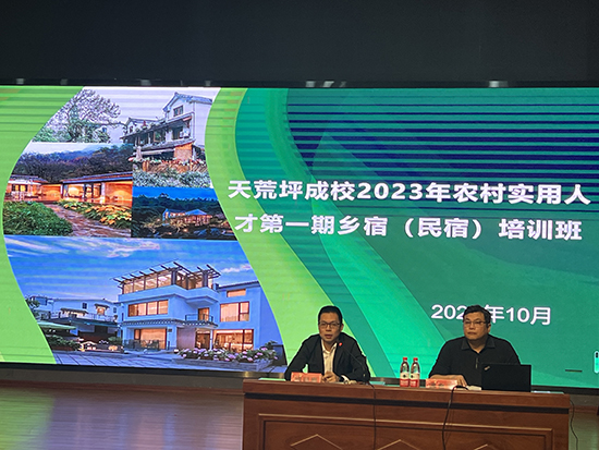 開班儀式由天荒坪分院校長潘育飛主持,上墅鄉分管領導胡迎春講話。胡迎春首先向大家闡述了舉辦本次培訓班目的及上墅民宿的發展歷程和實踐,同時,介紹了本次課程開設內容與要求,隨后,宣布開班,受到大家歡迎。