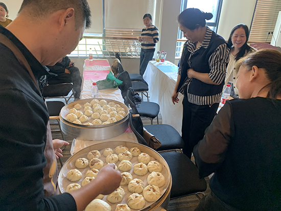 活動現場氣氛熱烈,轄區內老人們歡聚一堂。學校首先安排了做南瓜餅比賽,把在場的老人分成A組和B組進行比拼,根據包完南瓜餅的時間與南瓜餅的外觀進行評分,評出優勝組。大家一邊干活一邊說笑,現場熱鬧極了,在老師的指導下A組獲勝。接下來,學校安排了做餃子活動,在老師的指導下,一個個花式餃子做好了,看著親手包的餃子在蒸籠里冒著熱氣,大家的熱情也跟著沸騰起來,“活動非常有意義,既拉近了鄰里之間的距離,又弘揚了尊老愛老的傳統美德。”大家紛紛表示希望學校多開展此類活動。