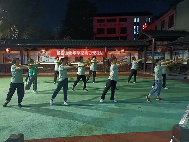 每當夜幕降臨,報福文體中心的健身場地便熱鬧了起來。在悠揚的樂曲聲中,一群大媽踏著旋律,揮舞著球拍,盡情地釋放力量與快樂。