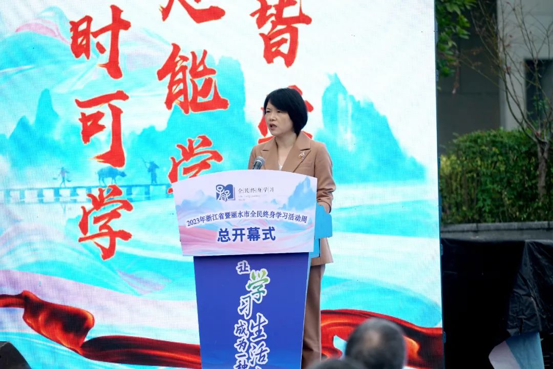 10月26日上午,以“讓學習成為一種生活方式”為主題的2023年浙江省暨麗水市全民終身學習活動周總開幕式在市圖書館舉行。省教育廳黨組成員、副廳長陳峰,市人民政府副市長盧彩柳出席并講話。浙江開放大學黨委副書記、校長王正東,浙江開放大學黨委委員、副校長張吉先出席。中國成人教育協會副會長徐公芳出席并講話。