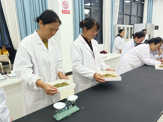培訓班聘請專家開展龍谷茶(扁形)標準化生產指導,并帶領學員到浙江農業商貿職業學院茶業學院進行評茶技能學習。