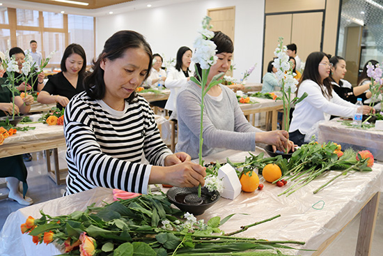 除了技巧的學習,居民們還了解了如何選擇和搭配花材,以及如何根據不同場合和氛圍進行合適的花藝布置。在課程結束時,插花藝術培訓還組織了一次作品展示和分享活動,居民們將自己的作品展示給其他參與者,并分享彼此的學習經驗和心得。參與插花藝術培訓的居民紛紛表示,通過學習插花藝術,不僅提升了自己的藝術修養,還培養了自己的創造力和審美能力。他們認為這樣的學習活動為居民們創造了一個和諧、美麗的學習環境,激發了他們對藝術創作的興趣和熱情。