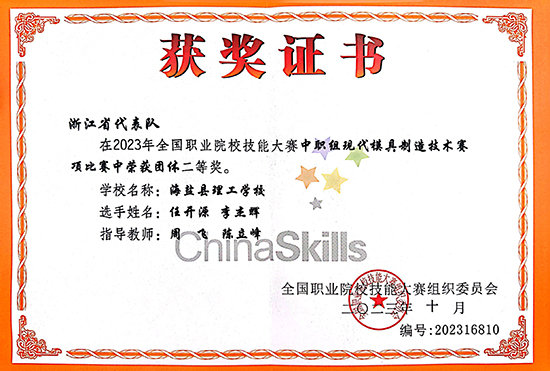 近日,2023年全國職業院校技能大賽(中職組)現代模具制造技術賽項在山東臨沂工業學校落下帷幕。海鹽縣理工學校21數控3班李杰輝、22數控3班任開源兩位同學代表浙江省參加該項目比賽,與來自全國各省市62支隊伍的124名選手同臺競技,最終榮獲國賽二等獎。