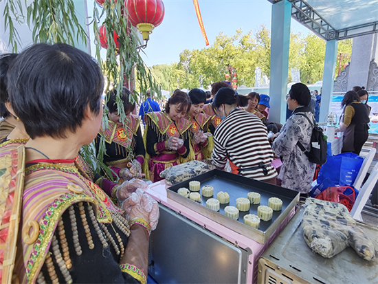 學校組織的手工月餅體驗活動在現場眾多的體驗項目中脫穎而出,受到了廣大百姓的歡迎。(何吉豐)