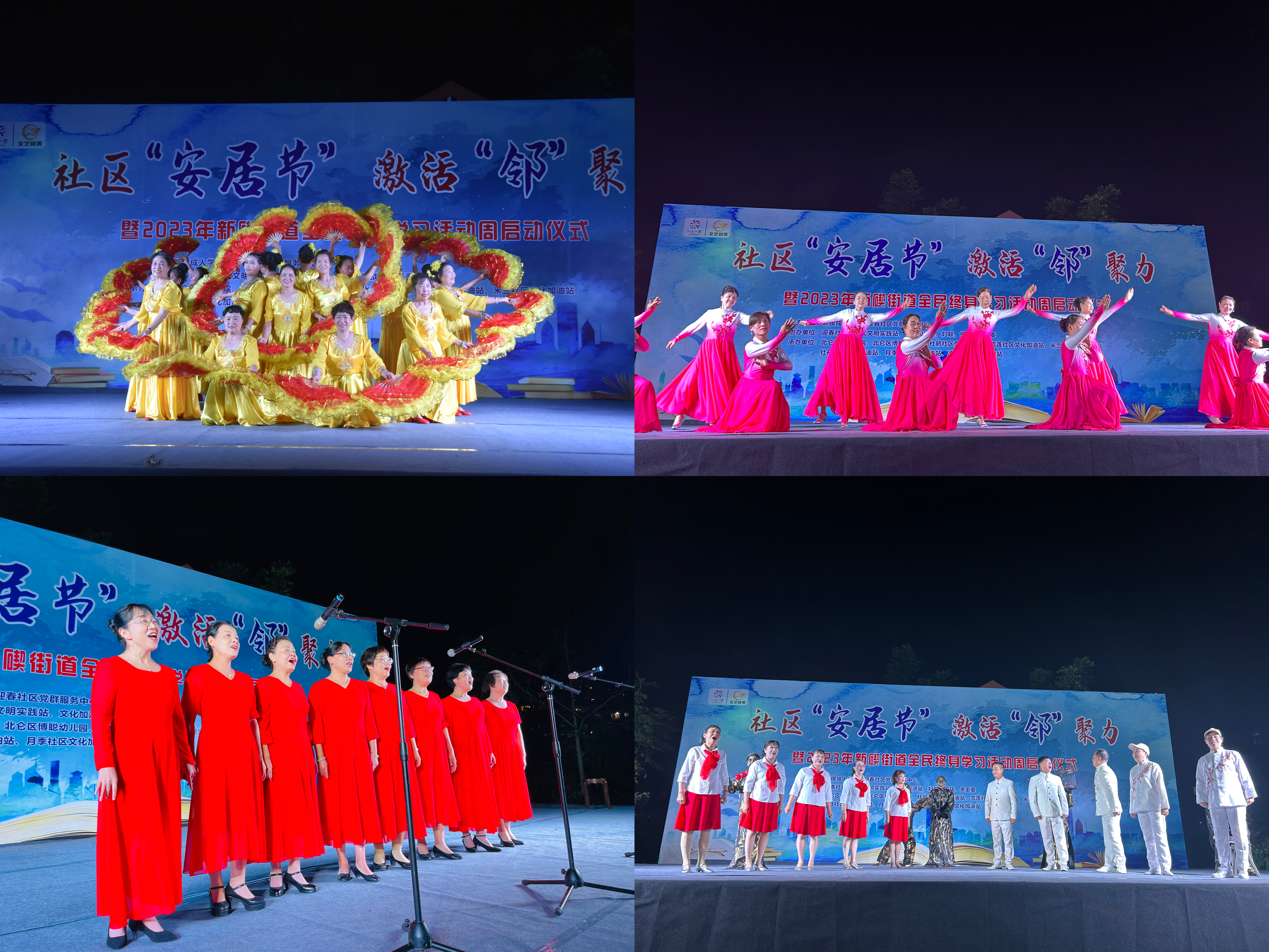 活動現場,座無虛席,熱鬧非凡,開幕式在節目《東方紅》中拉開帷幕,貫穿全年齡段的終身學習成果在此盡情展示:幼兒園小朋友、企業員工、居民朋友、新碶街道社區老年大學老年學員等把聲樂、舞蹈、書法、繪畫、手工、小品、童話劇、樂器合奏等學習成果帶上舞臺。