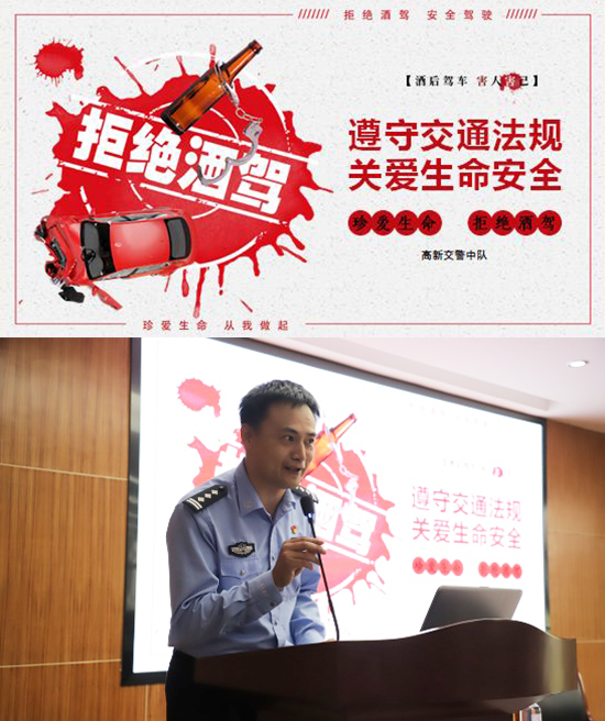 為進一步加強師德師風教育,嚴明紀律紅線、法律底線,杜絕酒駕醉駕行為發生,11月6日,寧波市鄞州職業高級中學召開全體教職工大會,邀請了高新區交警中隊指導員余鋰洪來校展開酒駕醉駕警示教育講座。