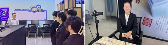 在商學院跨境電商實驗室、新媒體營銷實訓基地、金融科技實驗中心,同學們認真聆聽了武文明老師對各個實驗室的詳細介紹,對學院“四位一體”的應用型課程體系、校內校外融合的創新創業實踐體系、校企交互人才培養模式有了初步了解。直播室內,同學們還饒有興趣當起了“主播”,體驗了一把直播帶貨的快樂。