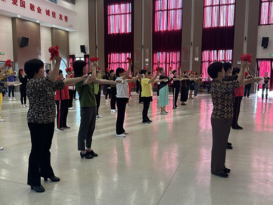 培訓現場,社區志愿者老師先手把手教學員怎樣掌握要領,耐心幫助學員分解動作。在老師的帶領下,學員們配合著充滿韻律的音樂,整齊劃一地揮動手中的健身球,在全身各個穴位上拍打揮舞,動作流暢舒緩,時而跨步、時而轉身,姿勢優美,充分展現了健身球操的獨特魅力。
