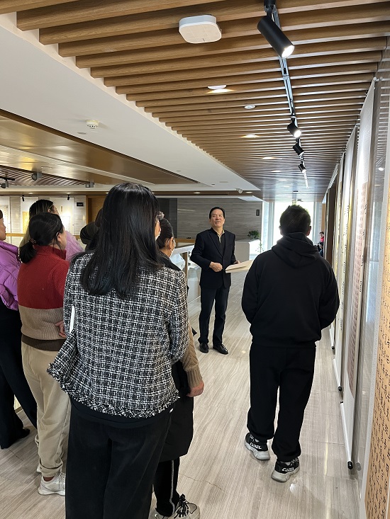 這次特殊的書法課依托的是在柯橋美術館舉辦的紹興市柯橋區(qū)書法篆刻大展。學員們首先參觀了以“藝路共富”為主題的,形式多樣的篆、隸、楷、行、草各種書體及篆刻的展覽作品,隨后在任課老師汪燦根的帶領下,大家各抒己見,大飽眼福,領略著不同書法愛好者的風采,感受每幅書法作品所帶來的情感寄托。