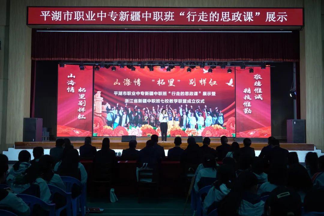 11月23日晚,平湖市職業(yè)中專新疆中職班“行走的思政課”展示暨浙江省新疆中職班七校教學(xué)聯(lián)盟成立儀式在校體藝中心舉行。