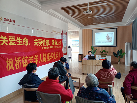 11月16日下午,諸暨市楓橋鎮新擇湖村文化講習所,楓橋鎮社區教育學校特邀諸暨市第二人民醫院的孟建鋒與鐘強來給村民開展健康講座。