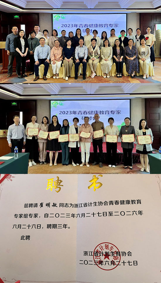 崔明敏拿著結業證書和專家組成員聘書說道:“這不僅是對工作的認可,更是一種責任。”下一步,學校將繼續做好青春健康教育工作,護航學生健康成長成才。(德清職業中專)
