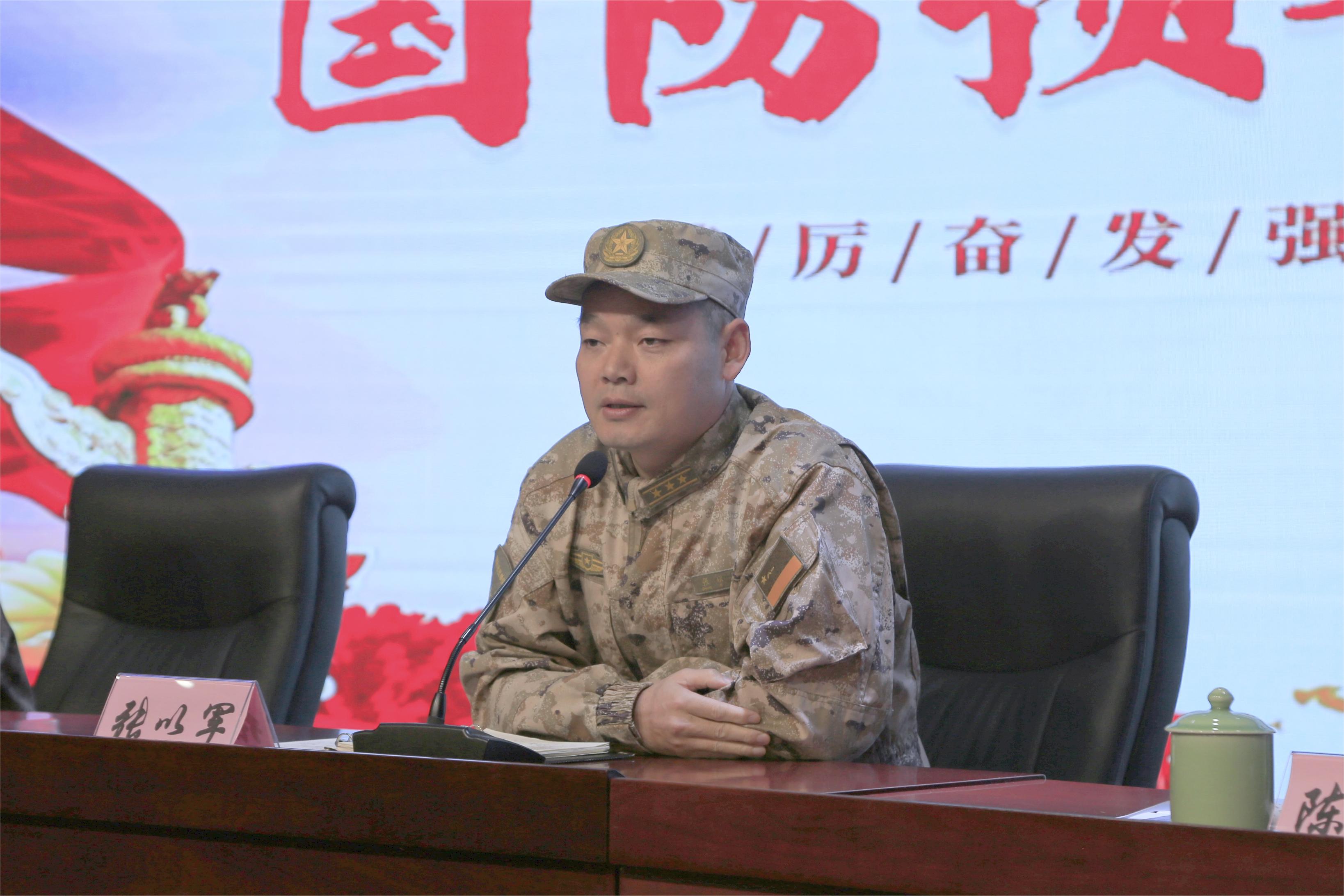 國防預備班教官黃毅作國防預備班2022學年年度工作總結。他用具體詳實的數據向大家介紹了國防預備班自開班以來的基本情況和取得的成績。他表示,經過一年的訓練,全體學員不僅提高了思想覺悟,增強了身體素質,培塑了作風紀律,更增強了社會責任意識,為家鄉建設貢獻青春力量。