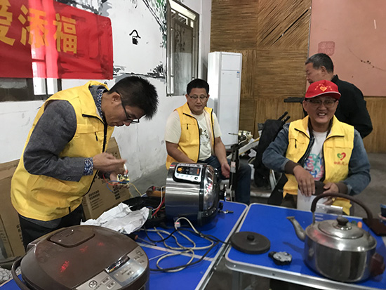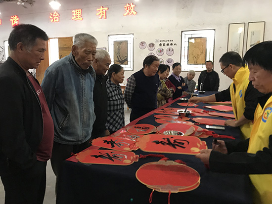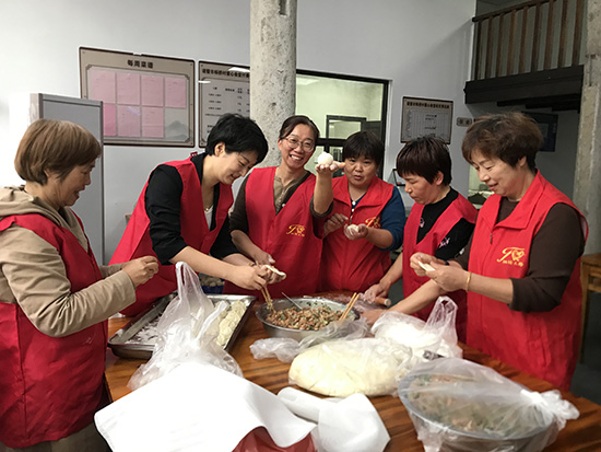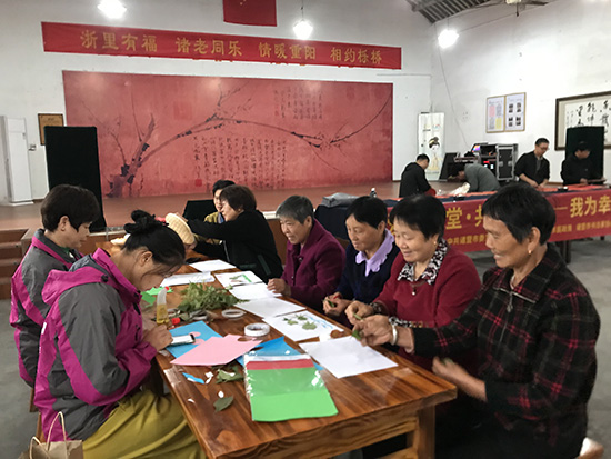 諸暨市楓橋鎮社區教育學校聯合楓橋鎮義工聯合會組織志愿者來到禮堂舉行豐富多彩的敬老愛老活動:“楓橋大媽”在愛心食堂內蒸饅頭,分頭揉面、剁肉、包包、蒸鍋,將完工的饅頭送給愛心食堂就餐的老人,就餐的老人吃著熱氣騰騰、美味可口的饅頭激動萬分,連連稱贊;理發組擺開架勢為老人們洗頭、理發,讓老人們從“頭”開始過上幸福生活;檢修組帶著工具為老人們檢修家用電器——電飯煲、電茶爐、電風扇……壞了的電器一經技師的手擺弄,又能重新啟動使用,讓老人們高興得合不攏嘴;醫療組運用測血儀測血壓、量體溫與醫學咨詢,在家門口享受專家待遇,問診求醫解決心中困惑;書法組擺攤在喜慶的紅燈籠紙上揮灑“壽、福”“平安”“幸福”等詞,一幅幅不同書體的作品一旦寫成就被爭搶一空;粘貼畫組手把手教老人們粘貼畫技藝,用不同色彩的樹葉在紙上張貼造型,在老師精心指導下,一幅幅憨態可愛的畫作在手中出現,一片片樹葉被賦予新的生命與生機,令老人們開心不已。