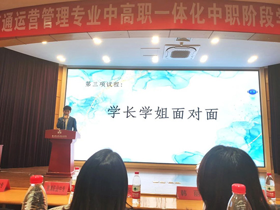 上午,浙江育英職業(yè)技術(shù)學(xué)院燕旭楠首先介紹了學(xué)校城市軌道交通運(yùn)營(yíng)管理專業(yè)的發(fā)展歷史和發(fā)展方向。燕老師用新穎的演講方式介紹了學(xué)校“五位一體”的培養(yǎng)目標(biāo),從職業(yè)形象、職業(yè)素質(zhì)和職業(yè)技能等五個(gè)方面讓學(xué)生提前了解在大學(xué)階段的學(xué)習(xí)目標(biāo),詳細(xì)解釋了學(xué)校訂單班的組成情況,明確了學(xué)生的努力方向。隨后,德清職業(yè)中專與浙江育英職業(yè)技術(shù)學(xué)院合作辦學(xué)的畢業(yè)生潘肖晨講述了自己從高中、大學(xué)畢業(yè)到成為指導(dǎo)駕駛員的學(xué)習(xí)經(jīng)歷。