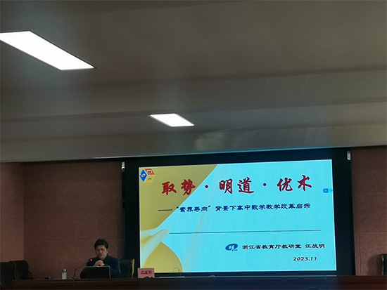 浙江省教育廳教研室江戰(zhàn)明老師作主題為《“素養(yǎng)導向”背景下高中數(shù)學教學改革啟示》專題講座,講座圍繞著“高考數(shù)學改革改在哪里”和“數(shù)學教學轉(zhuǎn)型轉(zhuǎn)向何方”兩方面,從“實現(xiàn)三大轉(zhuǎn)變”“強化三個功能”“落實三項舉措”“探索四考走向”“樹立四個風標”等內(nèi)容展開。浙江省特級教師王紅權作主題為《回歸理性 夯實基礎——以導數(shù)試題為例談2024復習教學》專題講座,王老師從高考真題出發(fā),探究高考數(shù)學題蘊含的數(shù)學思想,從高考題中提煉了直覺的重要性,點出了運算的重要性。湖州市高中數(shù)學教研員王勇強作主題為《高三數(shù)學復習備考策略和建議》的專題講座,他以歷年新高考試題為例,與大家分析了應用能力考查的“三考走向”——考閱讀、考推理、考運算。長興縣高中數(shù)學教研員王麗芳作主題為《從24屆一模縣情況分析談有效教學》的專題講座,王老師就一模試卷壓軸題的探究為主題與教師進行深入的交流。專家們通過高端前沿的理論結合多種試卷類型研究,為參訓教師接下去的教學工作提供了指導性建議,為對新高考、新變化、新要求正處于迷茫中的參訓教師指明了教學方向、解除了疑惑,老師們紛紛表示受益匪淺。