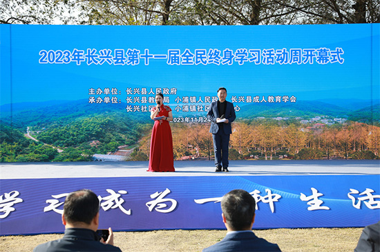 本屆學習周開幕式由長興縣人民政府主辦,長興縣教育局、小浦鎮人民政府、長興縣成人教育學會、長興社區學院、小浦鎮社區教育中心承辦。長興縣人民政府副縣長吳斌講話;浙江開放大學黨委宣傳部部長、馬克思主義學院院長方偉軍,湖州市教育局黨委副書記、副局長黃桂眾,湖州職業技術學院繼續教育學院院長、湖州社區大學辦公室主任雷術海,長興縣教育局黨委書記、局長欽國強,小浦鎮黨委書記陳煒,李家巷鎮黨委副書記、鎮長夏駿等出席開幕式。與會領導共同按下手印,長興縣第十一屆全民終身學習活動周正式開幕。