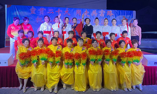 快樂的時光總是短暫的,熟悉的《我和我的祖國》的旋律響起,全體演員上臺合唱,此次巡演,共有歌曲、獨舞、越劇、廣場舞、表演唱等17個節目,豐富了村民們的鄉村文化生活,近300名觀眾沉浸在精彩節目的演出當中。(孫文明)