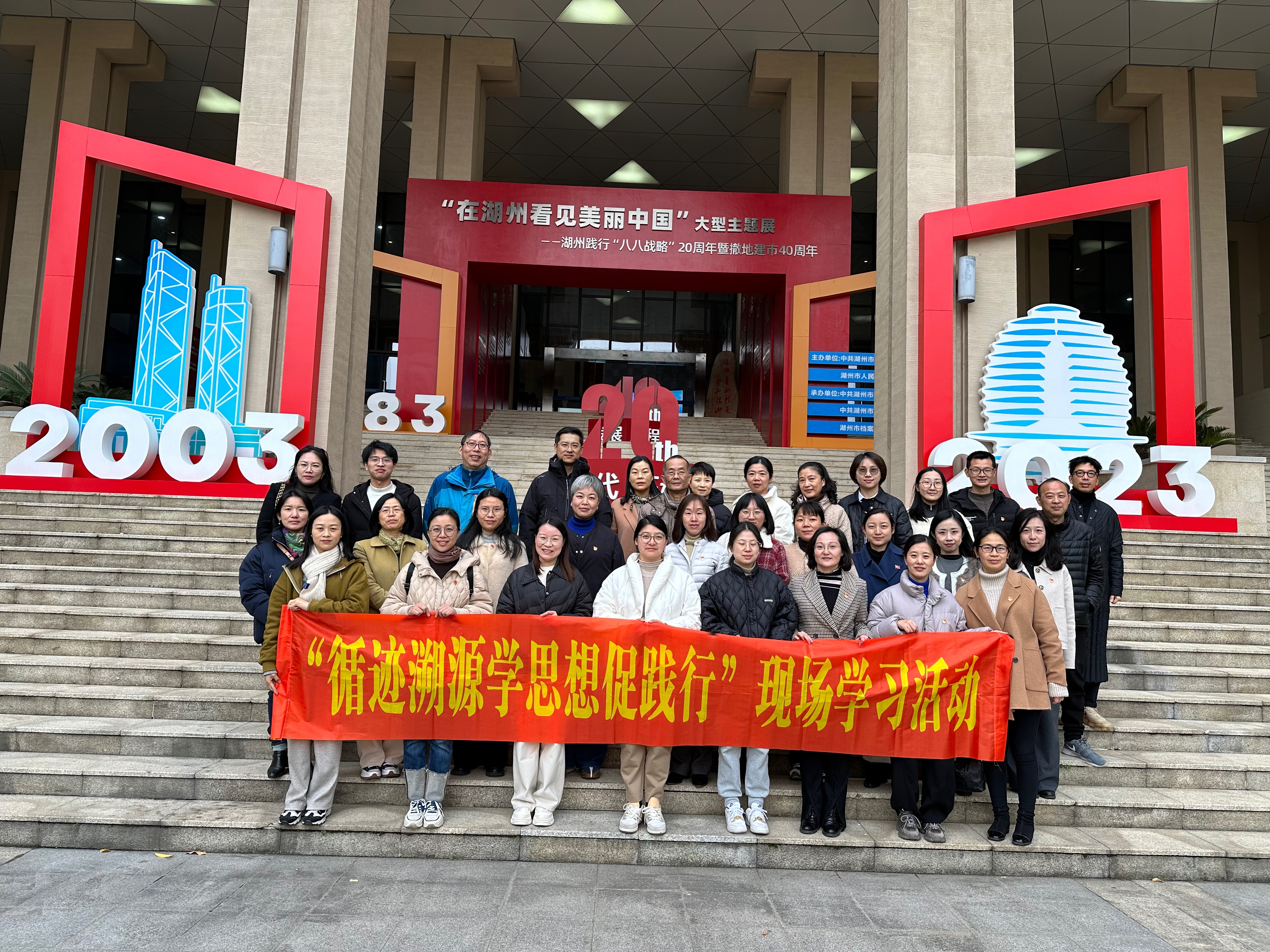 為深入學(xué)習(xí)習(xí)近平新時(shí)代中國特色社會(huì)主義思想,貫徹落實(shí)習(xí)近平總書記考察浙江重要講話精神,進(jìn)一步推進(jìn)主題教育走深走實(shí),浙江省湖州藝術(shù)與設(shè)計(jì)學(xué)校近日組織黨員教師前往湖州市檔案館,開展了“循跡溯源學(xué)思想促踐行”現(xiàn)場學(xué)習(xí)活動(dòng),參觀“在湖州看見美麗中國”——湖州市踐行“八八戰(zhàn)略”20周年暨撤地建市40周年大型主題展。