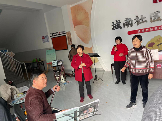 12月10日上午,安吉縣社區教育學院靈峰學習中心下屬城南社區老年學堂傳出陣陣婉轉悠揚的越劇聲,城南越劇藝術團正式開課啦。