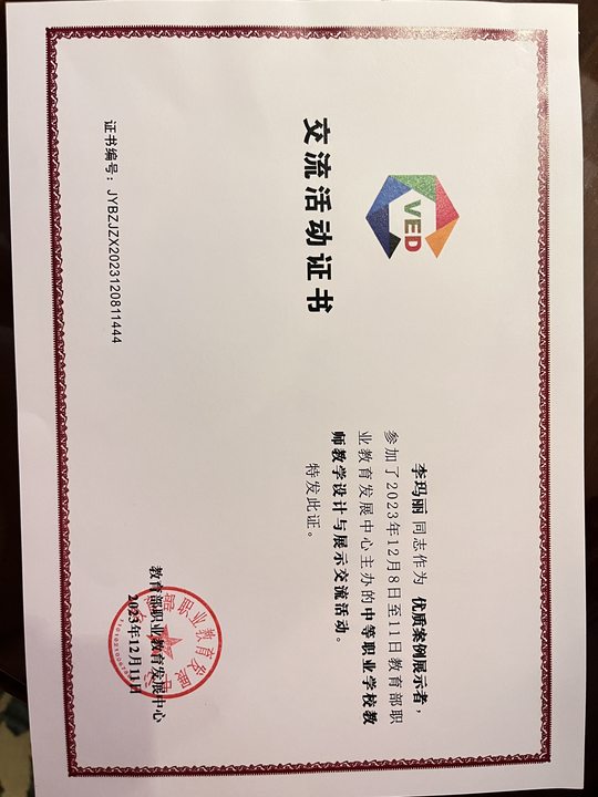 12月8日至11日,2023年中等職業(yè)學(xué)校農(nóng)林類和現(xiàn)代服務(wù)類教師教學(xué)設(shè)計(jì)與展示交流活動(dòng)在重慶舉行,紹興財(cái)經(jīng)旅游學(xué)校文秘教師李瑪麗經(jīng)過(guò)省賽選拔參加了此次活動(dòng),并通過(guò)精心準(zhǔn)備取得優(yōu)異成績(jī)。
