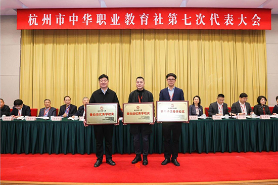 近期,杭州市中華職業教育社舉行第七次代表大會。開幕式上,舉行了杭州市第七屆黃炎培職業教育獎頒獎儀式。杭州市臨平職業高級中學(杭州市臨平技工學校)榮獲杭州市第七屆黃炎培優秀學校獎。臨平職高校長丁衛東受邀參加并上臺領獎。