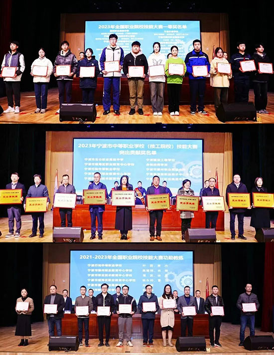 近日,第十八屆寧波市中等職業(yè)學(xué)校(技工院校)技能大賽開(kāi)幕式在寧波市鄞州職業(yè)教育中心學(xué)校舉行。本屆大賽由寧波市教育局、寧波市人力資源和社會(huì)保障局、寧波市總工會(huì)聯(lián)合主辦,寧波市職業(yè)與成人教育學(xué)院(寧波市職成教研室)承辦,這是一場(chǎng)屬于職教人的盛宴。開(kāi)幕式上對(duì)2023年度技能大賽表現(xiàn)突出的學(xué)校和個(gè)人進(jìn)行表彰,鄞州職高再次榮獲“突出貢獻(xiàn)獎(jiǎng)”。鄞州職高王志勇書(shū)記接過(guò)這一沉甸甸的獎(jiǎng)項(xiàng),王書(shū)記表示,這個(gè)獎(jiǎng)項(xiàng)是對(duì)鄞州職高在技能大賽中優(yōu)異表現(xiàn)的肯定和表彰,至此,鄞州職高已第12次獲此殊榮,學(xué)校將再接再厲,辦好人民滿意的職業(yè)學(xué)校。