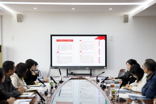 本次會議由校辦主任邵曉鳳主持。首先,她帶領大家學習《習近平著作選讀》第2卷——走中國特色社會主義鄉村振興道路及習近平總書記考察浙江重要講話精神,激勵大家不斷從中汲取智慧經驗,努力在以學鑄魂、以學增智、以學正風、以學促干上見實效,把學習成果轉化為堅定理想、錘煉黨性、指導實踐和推動工作的強大力量。