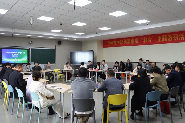 為進一步深化全市中職創新創業教育改革,提升中職創新創業教育水平,激發中職學生創新創業熱情,培養中職學生創新精神和創業技能,12月14日至15日,2023年臺州市中職創新創業“和合”主題教研活動在玉環市中等職業技術學校舉行,來自各縣(市、區)職教教研員、臺州市中職創新創業教學研究會成員、臺州市中職學校創新創業專業教師等60多人參加。活動由臺州市教育教學研究院教研員顏一鳴主持。