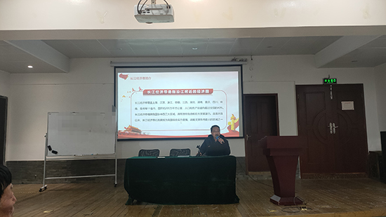 上午9時,葉校長帶領黨員同志們一起學習。他通過詳實的數據,豐富的圖片資料和視頻,先為大家講述了“長江經濟帶的概念、長江經濟帶政策的由來、長江經濟帶的優勢所在、長江經濟帶發展的目標”。隨后,他帶領黨員同志們深刻領會“習近平總書記在進一步推動長江經濟帶高質量發展座談會上的重要講話精神”。學習期間,黨員們始終保持著認真地學習狀態,不時點頭表示肯定。