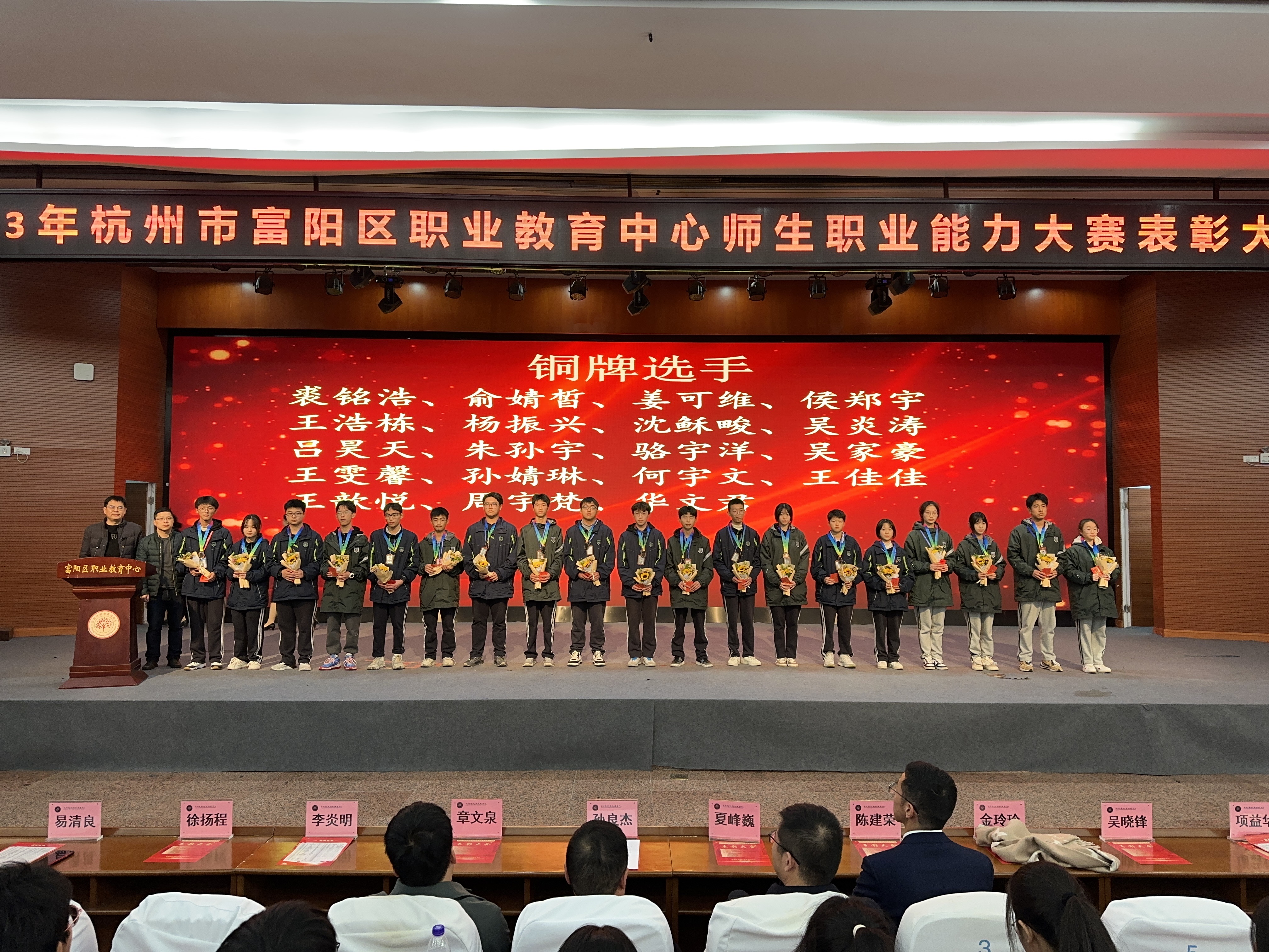 為慶祝學校在2023年杭州市中職學校師生職業能力大賽中取得優異成績,12月13日下午,富陽區職業教育中心舉辦競賽表彰大會。富陽區職業教育中心校長孫良杰、副書記章文泉、副校長陳建榮、夏峰巍和各專業部部長、副部長出席表彰大會,100名市賽獲獎學生參加現場頒獎典禮,全校2000余名學生在教室內觀看現場直播。