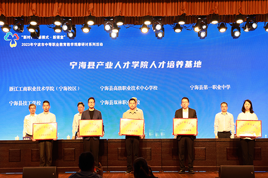 開幕式現(xiàn)場還為“第二批省區(qū)域中高職一體化人才培養(yǎng)改革校”(寧波4所)和“寧海縣產(chǎn)業(yè)人才學(xué)院人才培養(yǎng)基地”進行了授牌。