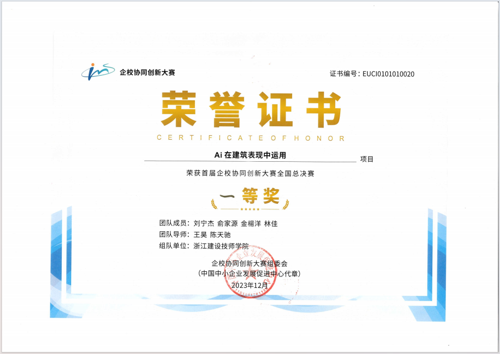 12月23日至24日,全國首屆企校協(xié)同創(chuàng)新大賽全國總決賽暨頒獎典禮在清華大學(xué)圓滿落幕。浙江建設(shè)技師學(xué)院的“建安馬斯克”隊表現(xiàn)優(yōu)異,獲得了“數(shù)字孿生”專項賽全國一等獎(第一名),王昊老師獲評“優(yōu)秀導(dǎo)師”,學(xué)院被授予“優(yōu)秀組織單位”,充分展示了學(xué)院在專業(yè)建設(shè)中數(shù)字化轉(zhuǎn)型的變革成果。