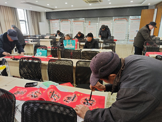 書法班程建兵老師帶領著學員現場書寫春聯和福字,一張張行云流水的書法、一句句溫暖感人的祝福傳遞對藝術的熱愛,分享學有所獲的喜悅,也讓大家提前感受到了濃濃的新年氛圍。