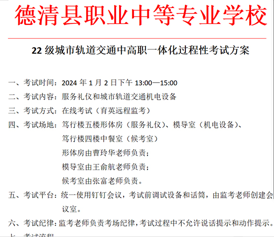 1月2日,德清職業中專烹飪旅游系依據浙江育英職業技術學院的要求開展了22級城市軌道交通運營管理專業中高職銜接過程性考核,旨在促進中高職教育的有效銜接。