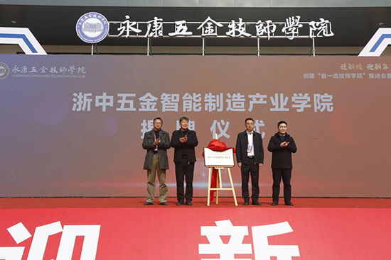 在熱烈的掌聲中,金職院黨委委員、副院長張雁平,永康五金技師學(xué)院黨委委員、常務(wù)副院長王鐘寶,及真空器皿股份有限公司總工胡壽仁、王力安防科技股份有限公司智能裝備中心總監(jiān)張兔書共同為浙中五金智能制造產(chǎn)業(yè)學(xué)院揭牌,這將推動區(qū)域中高職一體化高校資源下移,促進學(xué)校教學(xué)質(zhì)量的穩(wěn)步提升。