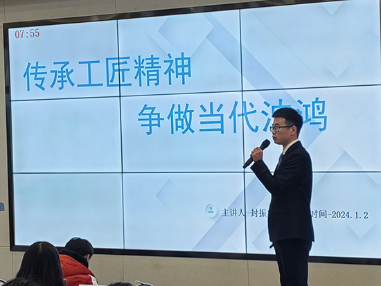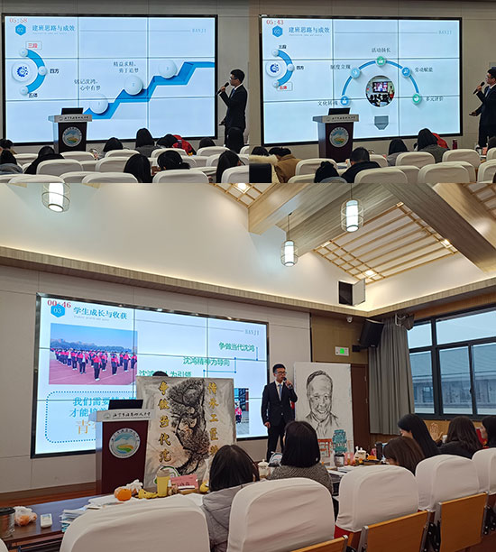 封振宇老師以“傳承工匠精神,爭(zhēng)做當(dāng)代沈鴻”為主題,從班級(jí)情況與目標(biāo)、建設(shè)思路與成效、學(xué)生成長與收獲三個(gè)方面闡述了建班育人情況。封老師在帶班過程中牢牢融入仿真企業(yè)建設(shè)理念,將班集體賦名為鵑湖新青年工業(yè)設(shè)計(jì)有限公司,以沈鴻院士為引領(lǐng)、以沈鴻精神為導(dǎo)向,通過“三段四方五體”的班級(jí)育人模式,不斷引導(dǎo)學(xué)生立志報(bào)國、筑夢(mèng)奮斗,踐行工匠精神,爭(zhēng)做當(dāng)代沈鴻。