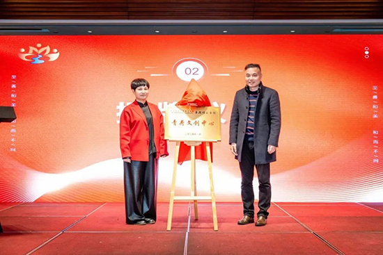 杭州市中華職業教育社秘書長張靈仙、杭州市教育科學研究院職教研究室主任周文涌共同為“青荷文創中心”成立揭牌,杭州市臨平商貿職業高級中學校長、黨委副書記沈琪及校黨委書記邵曉舟共同為臨平區家紡行業協會監事朱建偉和臨平區文化創意產業協會副秘書長劉純頒發“青荷文創中心”顧問聘書。