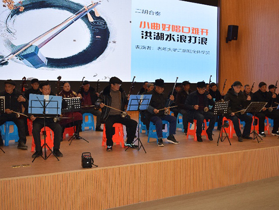 黃校長致辭后,迎賓腰鼓舞《九點》、二胡合奏《小曲好唱口難開》《洪湖水浪打浪》、廣場舞《媽媽謝謝你》、花鼓戲等十一個節目陸續上場,贏得了觀眾們的陣陣掌聲,天子湖分院舉辦的老年文藝匯演獲得了圓滿成功!(張敏)