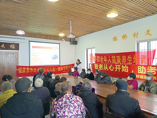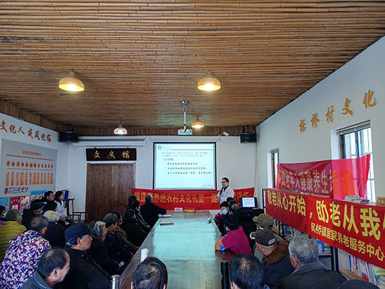 防控科孟建鋒醫(yī)師講了《健康,從我做起》的養(yǎng)生指導(dǎo),通過“什么是健康”“怎樣才能健康”“健康的影響因素”“經(jīng)營健康 享用生命”“健康一二一”娓娓道來,老人們對“日行一萬步”“吃動兩平衡”“健康一輩子”的觀點(diǎn)很是贊同。