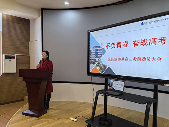 隨著高職考進入倒計時,高三師生全面進入緊張復習和沖刺狀態,在這個關鍵時刻,德清職業中專烹飪旅游系召開高職考考前動員會議暨優秀學生表彰大會,旨在鼓舞士氣,堅定信心。會議由烹飪旅游系副主任宋曉蘭主持。