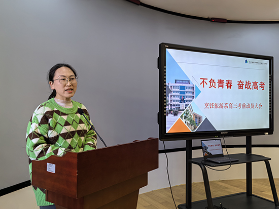 學生代表21旅游1班陳智怡也在全體師生面前表態并呼吁全體考生確定目標,付諸行動,養成優良的學習習慣,做思想上的強者,做生活中的強者,做學習上的強者。