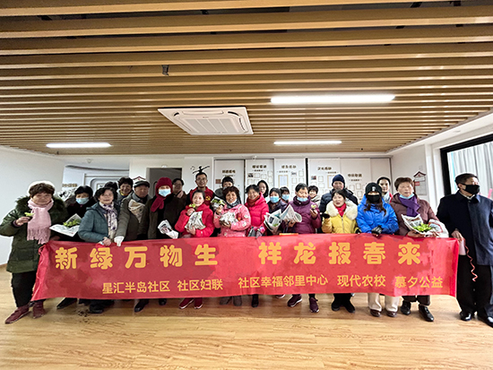 1月22日,湖州農校黨總支第一黨支部的楊勇老師、第二黨支部的徐婷婷老師來到湖州市星匯半島社區幸福鄰里中心,為社區居民開展《生菜栽培》的公益培訓活動。楊老師從生菜的生長習性、種苗繁育、生產應用、家庭園藝四個方面進行闡述,結合種苗盆栽,一一解答學員提出的日常實際問題,并傳授了一些種植小竅門。生菜諧音“生財”,楊老師和徐老師將湖州農?;嘏嘤纳朔N苗贈送給居民學員,祝福學員“新年生財”。