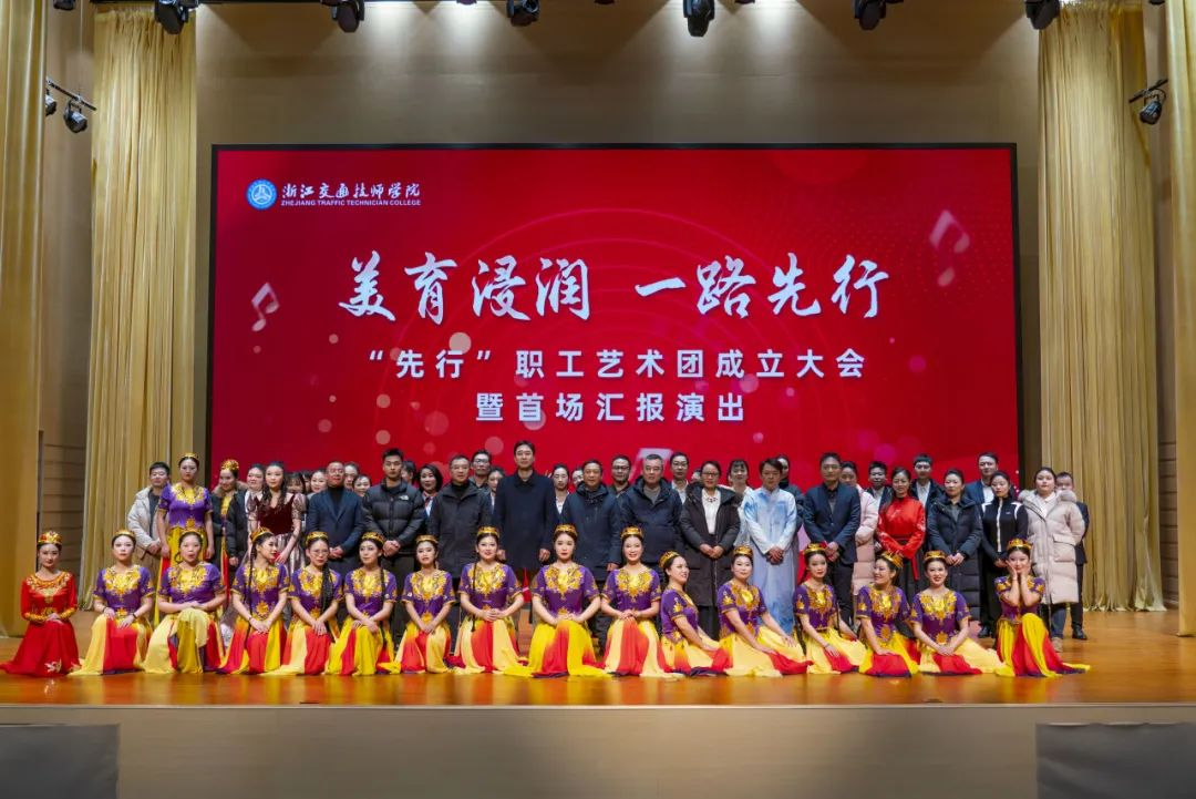 為了推進美育浸潤校園,豐富職工校園文化生活,1月24日下午,浙江交通技師學院“先行”職工藝術團成立大會暨首場匯報演出在文體中心三樓演播廳舉行,校領導和全體職工參加。