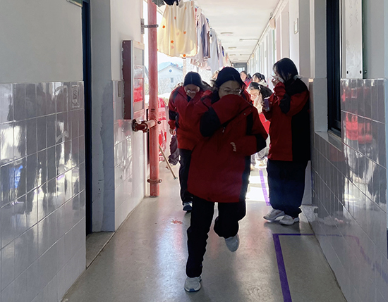 中午12時25分,疏散組及安全保障組成員迅速就位維持好各樓層寢室紀律,穩(wěn)定學生的情緒,大聲地指揮,教育學生撤離時要注意保護頭部,彎腰撤離,注意樓梯口行走安全。學生從樓道疏散時一律靠右行走,要求保持嚴肅,嚴禁說話、嬉笑、打鬧,嚴禁搶先、推拉,做到有序疏散。遇到前面隊伍停止時,后面同學應立即停止,防止踩踏事故發(fā)生。12時30分,全體住校生學生嚴格按照演練要求,在“三短一長”警報鈴聲響起后,用濕毛巾(手)捂住口鼻,成縱隊迅速有序、彎著腰疏散到操場集中。學生到達操場指定位置后整隊待命。寢室長清點人數(shù)并上報。
