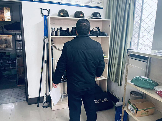 督查組成員查閱《外來人員來訪登記簿》《校園周邊安全隱患排查、整改登記簿》《警務(wù)室值班巡查登記簿》《外來車輛進(jìn)出校門登記簿》等臺(tái)賬的記載情況;查看滅火器、警用用備的使用期限;詢問視頻保存時(shí)間,讓警務(wù)人員回放錄像。警務(wù)人員能正裝執(zhí)勤,室內(nèi)地面整潔,物品擺放有序,各類《登記簿》記載完整、及時(shí)。來到園舍里,查看消火栓、滅火器、應(yīng)急照明、消防疏散指示標(biāo)志,都能每月一檢,正常完好;教學(xué)樓一樓醒目處張貼著安全逃生示意圖,落實(shí)了安全責(zé)任人,疏散通道和安全出口、消防車通道暢通,無雜物堆放與擁塞;兩處通往樓上的通道都設(shè)置了隔檔,張貼圖示禁止上樓。