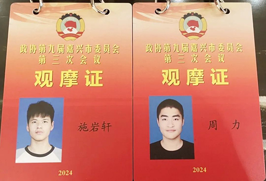 “一步入會場,最深的感受是莊嚴和震撼。通過近距離觀摩,我更加深刻地感受了社會主義協商民主,學習了全過程人民民主的深刻內涵。”來自嘉興市建筑工業學校的周力身著正裝,充滿朝氣帶著希望踏入會場,度過了一場難忘的旅程。