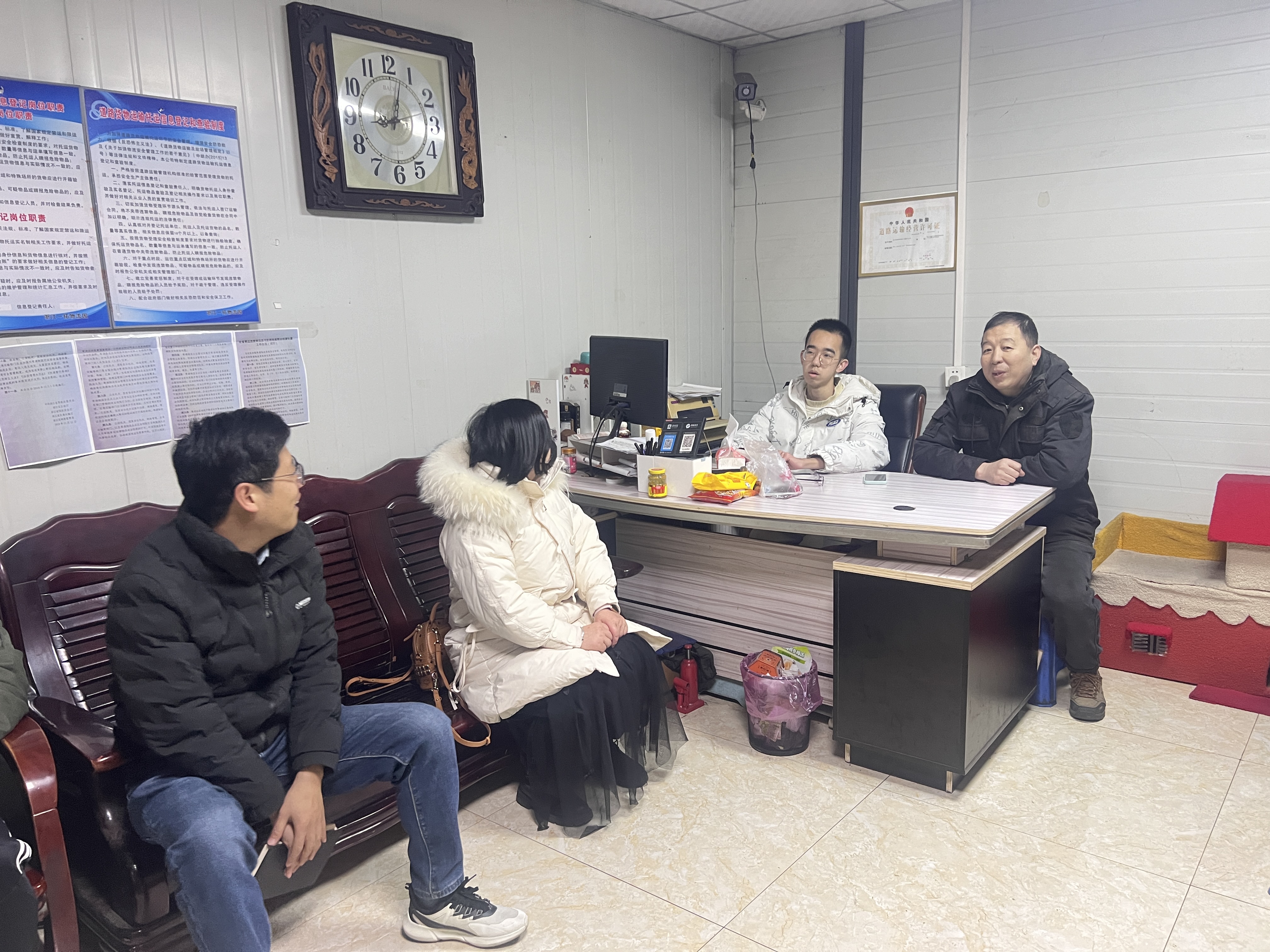 走訪第一站,閩通物流。老師們與實習生、單位負責人進行了交流。單位負責人稱贊實習生在工作中能遵守制度、吃苦耐勞。實習半年來,學生已能熟練操作,也增強了體魄,希望雙方多溝通,共同做好實習生管理工作。