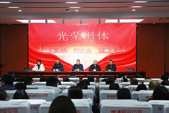 為表達對教師的關懷、關愛,對教師職業生涯奉獻的感謝,增強教師職業榮譽感、認同感、歸屬感,2月1日上午,德清職業中專為吳海華、黃永志和嵇惠玉三位教職工舉行光榮退休儀式。學校全體教職工共同見證了這一光榮時刻,儀式由校黨政辦負責人李馥萸主持。